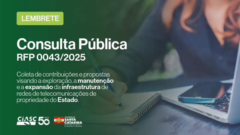 O Centro de Informática e Automação do Estado de Santa Catarina (CIASC) anunciou a abertura de uma Consulta Pública na modalidade Request For Proposal (RFP) para coletar contribuições e propostas de provedores de telecomunicações e demais interessados visando a  exploração, manutenção e expansão da infraestrutura de redes de telecomunicações de propriedade do Estado.