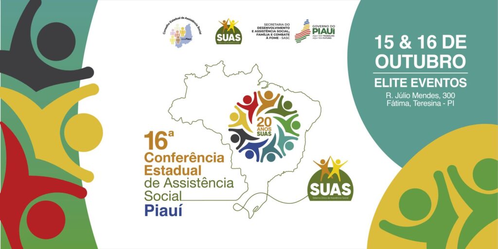 O Conselho Estadual de Assistência Social (Ceas) e a Secretaria do Desenvolvimento e Assistência Social, Família e Combate à Fome (Sasc), por meio da Superintendência de Assistência Social, realizam nos dias 15 e 16 de outubro a XVI Conferência Estadual de Assistência Social do Piauí. O evento acontecerá no Espaço Elite Eventos, no bairro Fátima, zona leste de Teresina.