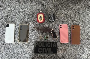 Além disso, um dos alvos foi autuado em flagrante porte ilegal de arma de fogo. Em um dos endereços, os policiais encontraram 04 aparelhos celulares, 01 arma de fogo artesanal e 06 munições calibre 38 na posse de um dos suspeitos.