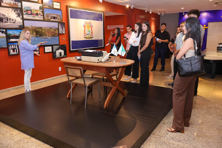 Em seguida, o grupo conheceu a vitrine das Olimpíadas dos Tribunais de Contas (OTC), conduzida pela servidora Claudete Ferreira. No memorial, a auditora de Controle Externo Fernanda Guimarães, da 5ª Diretoria, apresentou as atribuições e competências do TCE, destacando a importância do controle concomitante — realizado em tempo real — e do controle posterior dos processos. “Trabalhamos com um plano anual de capacitação voltado aos gestores, porque antes de apontar falhas, nosso papel é orientar”, enfatizou Fernanda.