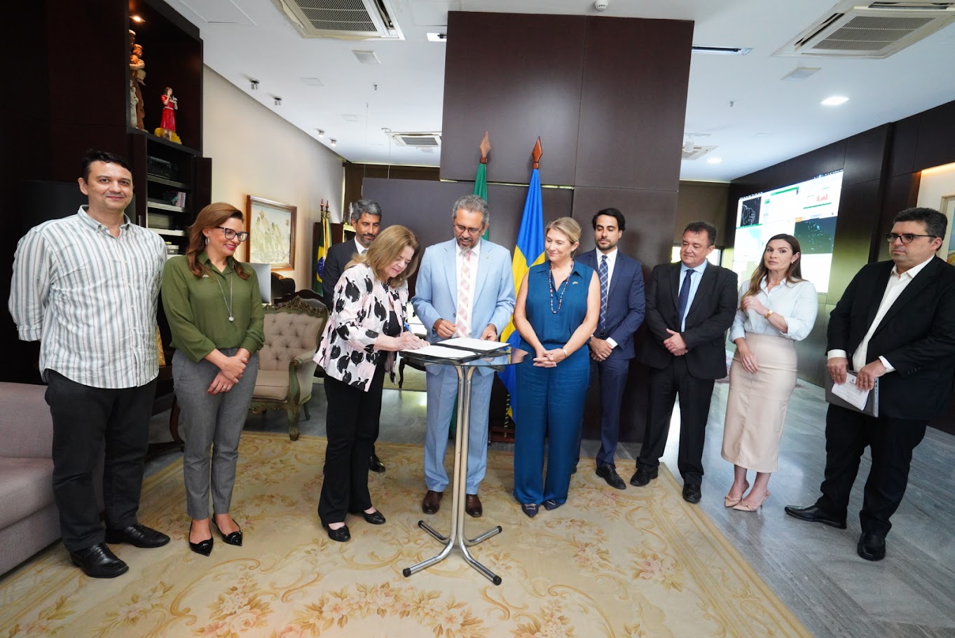 Na tarde desta terça-feira (28), o governador Elmano de Freitas recebeu, no Palácio da Abolição, em Fortaleza, a embaixadora da Suécia no Brasil, Karin Wallensteen, e representantes da empresa sueca Anodox Brasil, em visita institucional. Durante o encontro, foi assinado um Memorando de Entendimento (MOU) entre o Governo do Ceará e a companhia, fortalecendo a parceria entre o Estado e o país europeu.