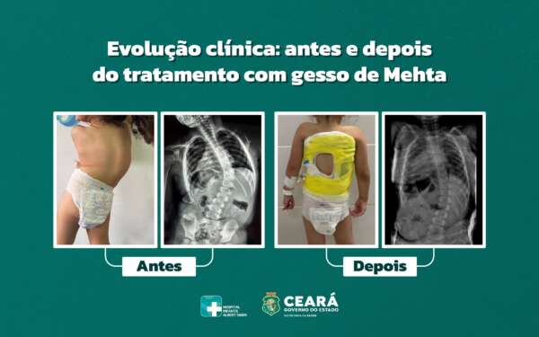 Diante desse cenário, o Hospital Infantil Albert Sabin (Hias), da Secretaria da Saúde do Ceará (Sesa), passou a adotar a técnica do gesso de Mehta, considerada “segura, acessível e não cirúrgica”, para tratar a escoliose de início precoce, aquela que aparece antes dos de anos.