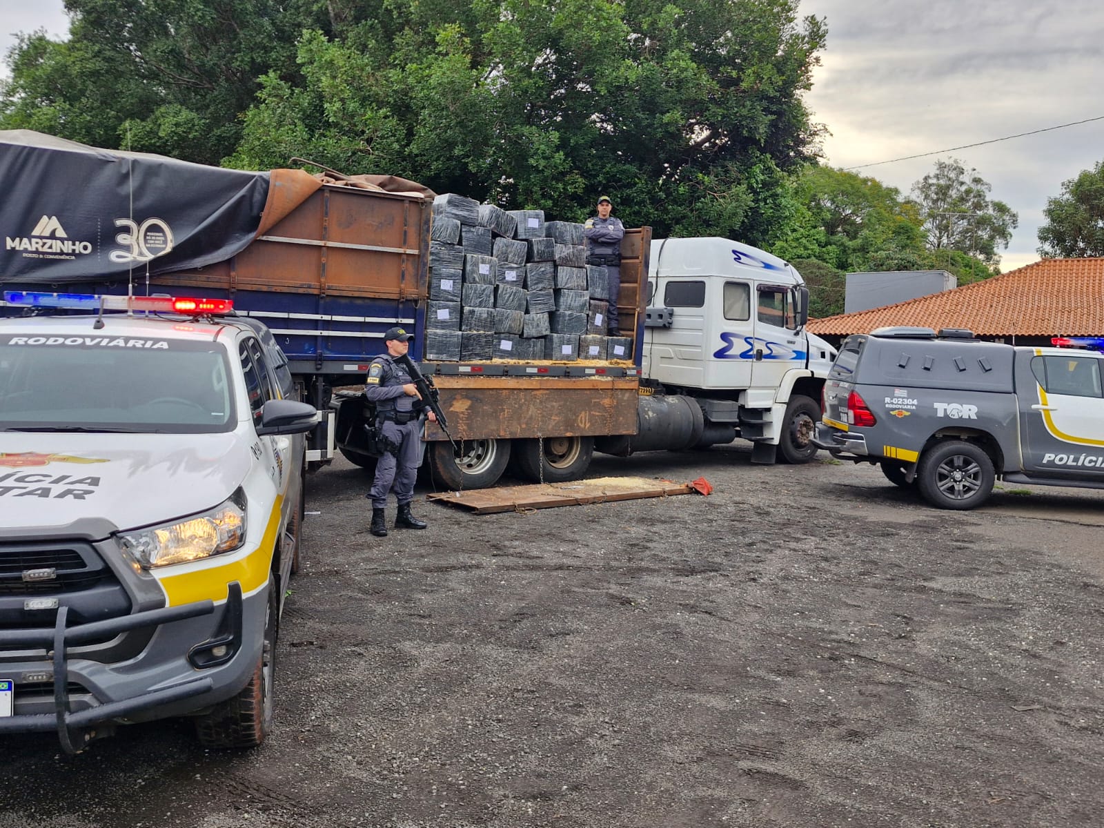 Um caminhão suspeito de trafegar com carga ilegal foi apreendido com quase duas toneladas de maconha no município de Palmital, no interior de São Paulo, na tarde de quarta-feira (5).