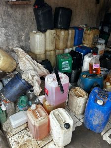 Os militares realizaram diligências para apurar denúncias sobre o armazenamento irregular de combustíveis em um galpão nas imediações. No local indicado, os policiais encontraram diversos galões contendo gasolina e etanol adulterados, totalizando mais de 1.000 litros dos materiais.
