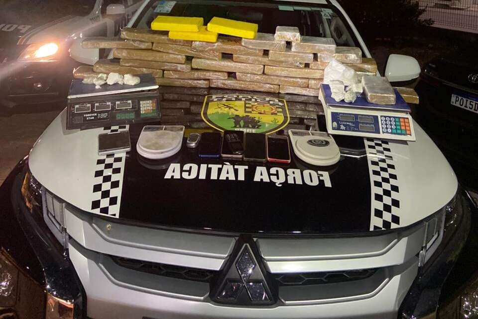 Com as informações repassadas pelo suspeito, em um imóvel abandonado nas proximidades, foram localizados 19 tabletes de maconha (19,34 kg), quatro tabletes de cocaína (4,5 kg), seis tabletes de crack (6 kg), balanças de precisão e industriais, sacos plásticos, celulares e cinco granadas. A área foi isolada, e o Esquadrão Antibombas do Batalhão de Operações Policiais Especiais (BOPE) foi acionado para o recolhimento e posterior detonação, em segurança.