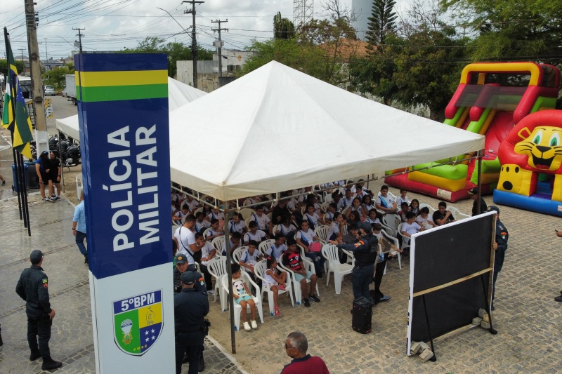 Durante o evento, profissionais do 5º batalhão, do Regimento de Cavalaria Mecanizada de Motopatrulhamento (Getam) e do Grupamento Tático Aéreo (GTA) realizaram, com total observância aos protocolos de segurança, apresentações de manobras com motocicletas, além de sobrevoos e pousos com a aeronave, respectivamente, contribuindo para que o momento fosse ainda mais especial.