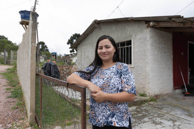 A dona de casa Jaine Correa Foggiato, 25 anos, mãe de três crianças, foi contemplada pelo programa Caixa D’Água Boa e agora tem água armazenada e disponível para usar em sua rotina diária. “Tendo a caixa é muito melhor. Até quando acaba a água da rua, tendo a caixa a gente pode ajudar outras pessoas também. É um benefício bom pra gente e pra quem tá perto”, declara.